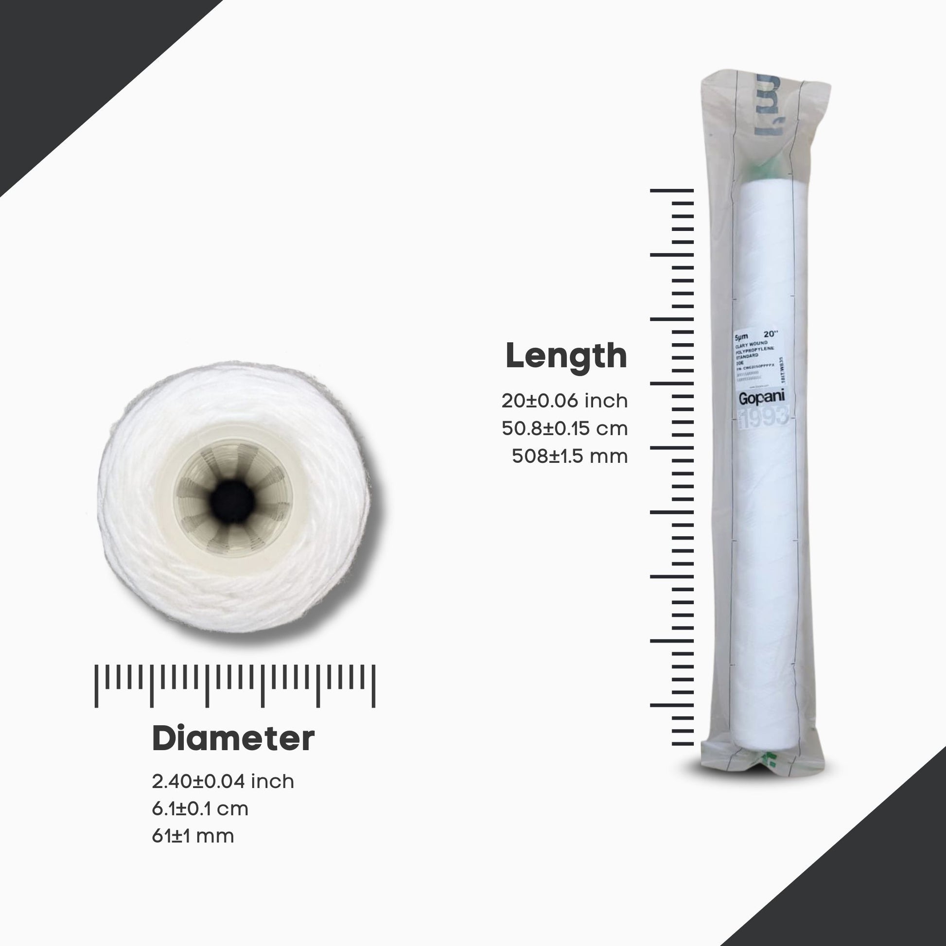 The Gopani Clarywound Ultra 2.5 x 20" String Wound Cartridge ensures powerful sediment control and long-term protection for your water filtration system.
