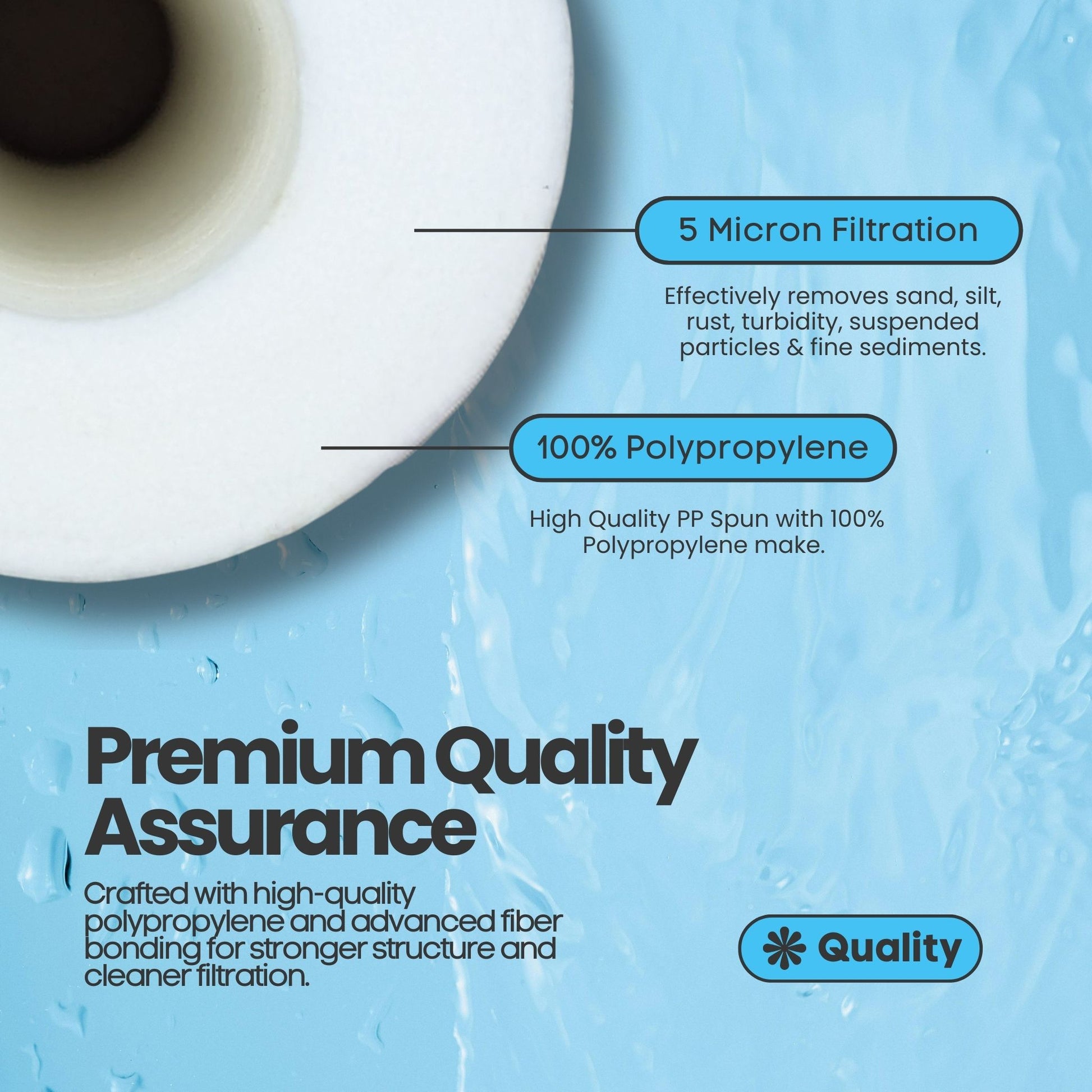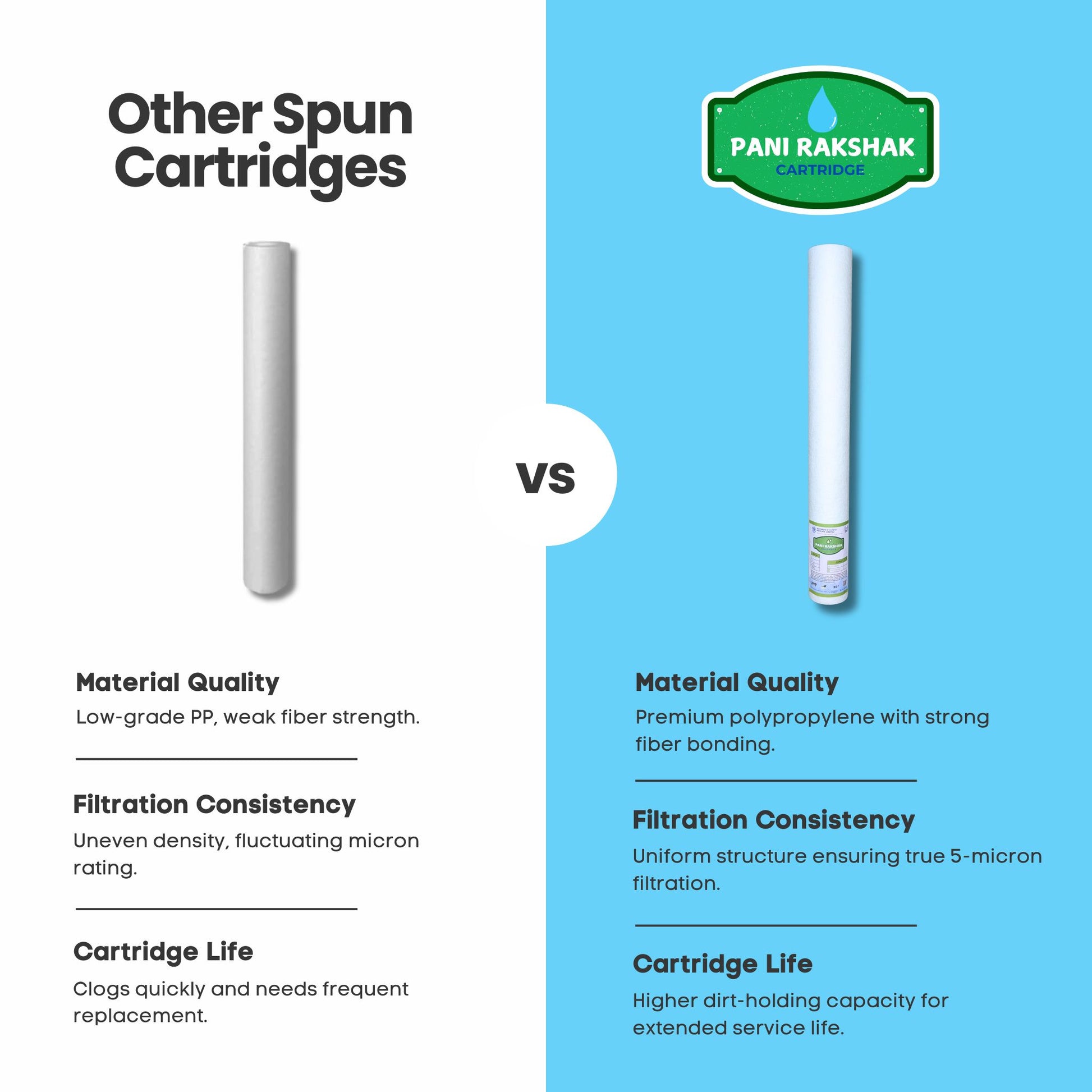 The Pani Rakshak 2.5 x 20" PP Spun Cartridge ensures powerful sediment control and long-term protection for your water filtration system.